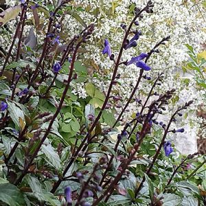 🏷金曜日の蕾たち に、参加させていただきます🙇♀️ 名前わすれちゃって😫😅 分かりました。スクテラリアブルーファイアー(パープル) 沢山咲き始めました。 (❁.1㌢弱) 奥の白い花 ユーホルビア ダイヤモンドスノー