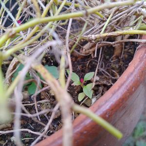 小さな小さなケイトウ 薬指の爪くらいの大きさ。 庭仕事のご褒美 うねうねはロータスコットンキャンディの茎。