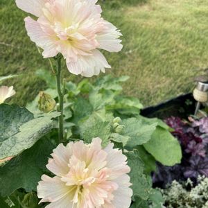 植え付け時期が遅く、なかなか咲かなかった八重咲のタチアオイがちらほら咲き始めました☺️ 二枚目のケイトウも暑さに負けず可愛らしい花を咲かせています✨