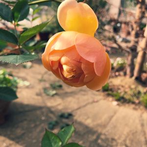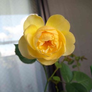 雨の朝 おはようございます 気持ちを上げてくれる↗️↗️ 元気カラーのバラ🌹 土が固く鉢パンパンだから 早く土替えしてあげたいな🪴