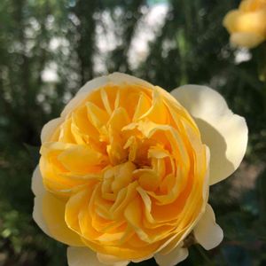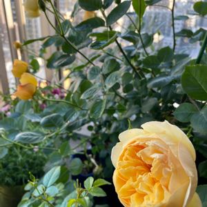 レモンイエロー系のバラが欲しくてこの子をお迎え🧡 イングリッシュローズの「ザ・ポエッツワイフ」が欲しかったんだけれども、近場ではボロッボロの苗しか売っていなくて…(ボロボロなのに普通の値段やし)