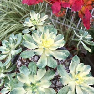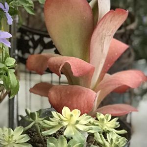 ルシー と 愛染錦 我が家の多肉の中で、ひときわ大きなルシー。 紅葉が増し増しで、うれしい。💕