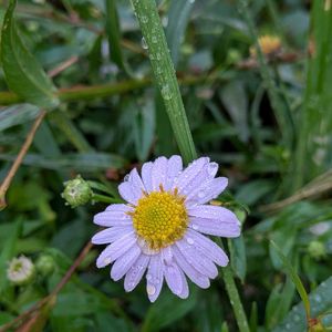朝の🏃から〜 田んぼのあぜ道に… コヨメナとマルバルコウソウが、朝露に濡れて咲いていました〜💜♥️🌿