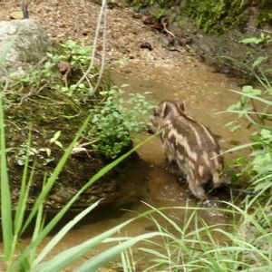 ウリ坊は一匹だけと思ったら、あと三匹いた。 川で水を飲んでいたみたい。 ウリ坊は可愛かった。 親は怖いけど。