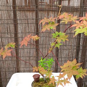 こんにちは👋😃 モミジの盆栽「赤いオバケちゃん」の鉢に生えている小さいオトギリソウの仲間に花が咲きました!🤗💕 ①赤いオバケちゃんまだ薄紅色を保ってます。 例年よりきれいです! お花なんて見えない? よ~く見て下さいね~👀 ②ちょっと寄ってみるとようやくわかりますね~! 小さい小さい黄色のお花です。 ③もっと寄ってみましたがそれでもまだ小さい。 しかも午前中の1時間ほどしかちゃんと開かないので水やりの途中、あわてて写真を撮りました。 蒔絵萩のポットから芽を出したものが種を跳ばし今はあちこちの鉢に生えています 🤭🎵