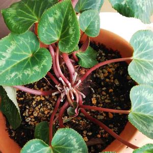 2年目シクラメン(❁'ω'❁) 葉組みしてないのに、このように✨早く大きくな〜れ~🤩