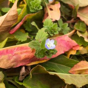 日光浴ショット番外編 明日は天気予報によると猛吹雪らしい 可憐なお花も春まで見納めかも 雪と落ち葉のお布団で おやすみ おやすみ