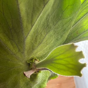 ビーチー1号は強い子です。✨ 擦れ🚚💥 風呂場放置🌀🌬️ 一夜取り込み忘れ去らる🌨️🌬️ トリプルパンチ☠️を受けても 胞子葉出てきた❣️ 反対側には貯水葉2枚😳 負けるもんか〜✊してます。 えらい、えらい🎊 見習わねば😊