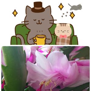 🌼シャコバサボテン🌼 垂れ下がっている😅 とっても重そう😅 でも元気に咲いていて 下にある雷鳥さんがかくれんぼ(^○^) おはようございます(*^^*) ちょっと今日は朝からトラブル続きですが 22日ニャンニャンと 頑張るニャン🤣🤣🤣