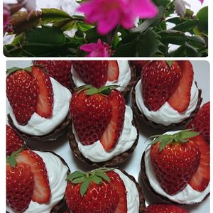 『ショコバサボテン』 今日は🍓の日ですが ケーキ屋さんに行けなかったのでミニチョコタルトにレアチーズを流してかためホイップとイチゴをのせました‼️ 沢山作りすぎて怒られちゃったよ😅 宜しかったら どうぞ召し上がれ😆👍➰
