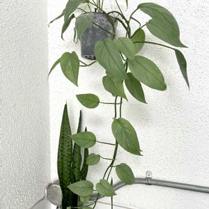 綺麗な深い切れ込みが入るようになってきたエピプレムナム•ピナツム(ハブカズラ)🍀 我が家に迎え入れた時は30センチくらいでしたが2年半で鉢底から1.5メートルの高さになりました。 pic.2 1メートルの登り棒を登り切ったので50センチ継ぎ足しました🎶 pic.3 新葉の大きさは葉先まで45センチあります🌿 最近は近くの園芸店でも見かけるようになりレアなものではなくなってしまいました🤗