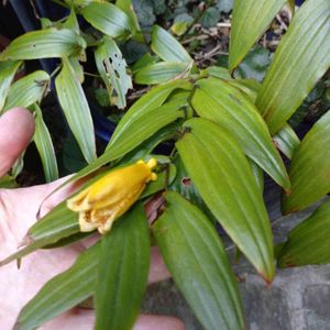 斑入りキイジョウロウホトトギス 産直で見つけて珍しいのでお迎えしました! お花1個がぶら下がっただけ、、花の中はオレンジで葉っぱは斑入り