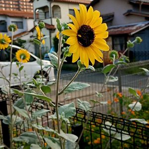 自宅花壇のシロタエヒマワリは、開花は遅いけど、次第に花数が増えてきました🤩🤩🤩 台風が来てもいいように、メッシュフェンス横に植えてあります。 支柱がなくても、縛れるので🌿☘️
