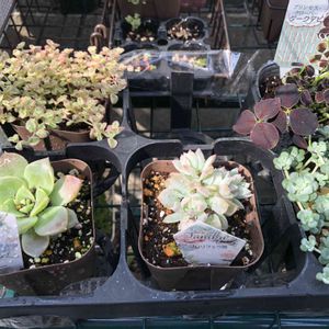今日は四万十市での多肉でおきゃくのイベント。息子を荷物持ちに連れて行き、そのイベで購入したneneさん苗♡ 抽選番号70番 3グループ目で購入出来た。1グループ10分。会計まで済ませる。 時間があっという間にすぎてあたふた😅💦 レッドベリーはあるのについ買ってしまった😆可愛いつぶつぶ この4つをお迎え♡ 息子に持ってもらい次の抽選へ💨💨💨 抽選やグループ分け、色んな事がはじめてで、戸惑いながらめっちゃ楽しんでました😁