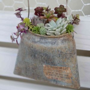 こんにちは😃 今日はお天気良かったはずなのに 朝は🌂パラパラ 今はどんより☁️ 先日初めてのイベント 多肉とみどりのマルシェに行ってきました 雨☔️の中 なんとかお買い物できました^ ^ 素敵なリメ缶をお迎えできて 早速寄せ植えしてみたよ🌱 スクスク育ってね💗 プロリフェラ錦 センペル ブロンズキング オーロラ