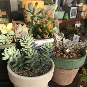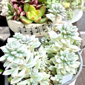 こんにちは😊 今日は所要で出かけられず😭 一人WS開催中 って最近寄植え熱高っ❗️😆 ikuraちゃんとnomaちゃんコラボの スチパン鉢寄せ直し 長年ウチにいたオパリナを 表舞台に出してあげた😆