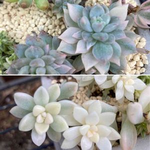 こんにちは☀ 今日はいいお天気です🙌 今日は24日錦の日に参加しま〜す💗 プロリフィカとプロリフェラ錦両方ともまだ最近お迎えしました😊 が💦 これ調べたら同じみたいです😣 セダムのプロリフェラに分類されてたのがエケベリアのプロリフィカに分類たが変わったらしいです😓 似てると思ったけど😅 見比べてみたら錦と付いてないプロリフィカの方が斑がはっきりしてますがこれはその苗にもよるんでしょうね🤔 右の子もこれから錦を発揮してくれると思います😌 やっちまったぜ💦 カブった〜😣 でも可愛いからどっちもどんどん増えます様に🙏