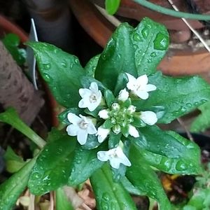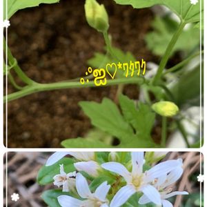 避難先の棚下で咲いています。🎶 見逃しそうな小さな花達です😆🎵🎵