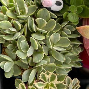 こんにちは✨ あまりの暑さに、5分と外に出て居られないです🥵 パッと撮ってきた斑入り💚 ̖́- 1.リトルミッシー 半日陰のブラブラだと元気です🌿 2.アイビーの斑入り 玄関で増えてます🍀*゜ 3.ベビーサンローズ錦 元気だけど、お花がなかなか咲きません😅 4.子宝草 放ったらかしで焦げちゃったのですが、葉っぱの先の子株の先に、ちっちゃい🌱が出ててビックリしました😳 5.外の日が当たらない棚で、なんとか元気な斑入りエケベリア 🐄⸒⸒さんと一緒に✨ 🏷️錦の日 🏷️牛の日 参加しますね💕︎