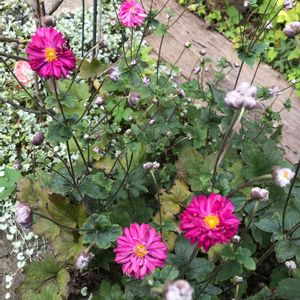 大好きになった 秋明菊が お向かいさん家の裏庭にも…4種類も 育っていました🤗