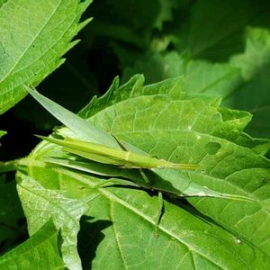 先週投稿したカエルの擬態に続く擬態シリーズ。魅惑の宵の葉の一部に見事に化けていて画像で見るまで全く気がつかなかった。葉をかじるのだけはやめてほしい。