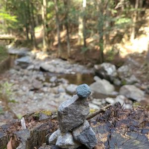 《石の日》投稿第二弾もロックバランシングで😄左上が愛妻の、右下が私の作品です。これはカウンターバランスです。一番上の石をそっと取り去ると二番目は転げ落ちます。つまりその2個があって初めてうまく載っかっているのです。