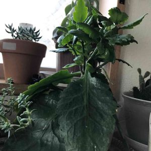 我が家のオバケカランコエ。 秋にカットして放置してたら下のどでかい葉っぱ(最初から下向きシャキーン✨)も元気なまままたまた新芽モリモリ。 でもバランス悪すぎてどうしたらいいんだか。┐(´д`)┌ でもデカ葉っぱ、切れないのよね。面白くて( ̄▽ ̄)
