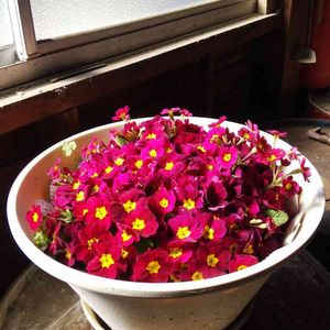 目玉焼きシリーズ11🍳 今年もプリムラポリアンサ。 去年シリーズ始めたのがこの色のこの花でした。 サントリーフラワーズのサフィニアについてのオンライン講座に当選しましたよ✌️