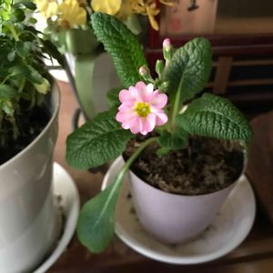 去年のクリスマスのリースに植わっていた花の中で、生き残っていた苗を植え替えたら花が咲きました🌸 とってもかわいいのですが名前が分かりません🙇♀️