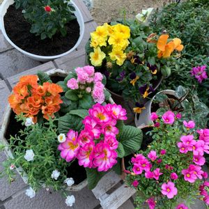 🌸寄せ植え🌸 母の誕生日に寄せ植えを作りまーす😊 全体的に大人しめの色合いに なってしまいましたが。。。 2020年2月撮影
