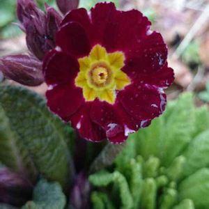 もう咲いてしまったプリムラ😃 しかも雨🌀🌀 早く咲いても他の子はまだ寝てるよ? 円い形はオーリキュラみたいで結構好きな形です😄