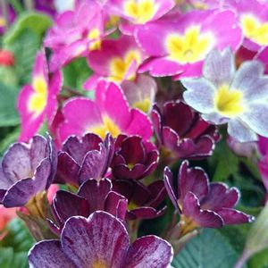 プリムラ ポリアンサのお花が咲いていました。 一重咲きやフリル咲き、八重咲き、バラ咲きがあり、花色も豊富で秋から春までお庭を明るく彩ります。