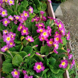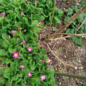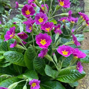 長年経っているプリムラポリアンサ❣️ 日毎に花数が増えてきました🎶 地植えの株分けして並べているポリアンサにも遅れてお花がポツリポツリと咲き始めました🙆