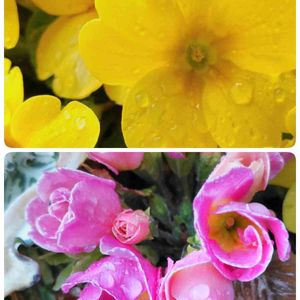 今日は あいにくの☔☔☔ 玄関先の寄せ植え🌺🌼🍀 雨のお陰で 潤って 色鮮やかに見えるかな⤴️😊🌺🌿🌼🍀