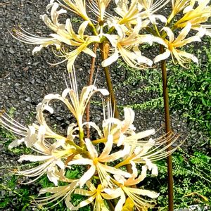 横浜赤レンガ近くの道にて 白い彼岸花 もともと九州に自生していたもの 最近ではよく見かけます 我が家のねこのヒゲみたい