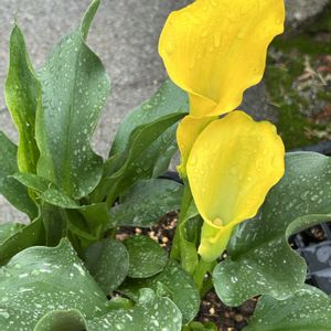 4月に植えた球根 カラーが咲きました 嬉しい😆 3球植えた中で 1番乗りはイエローでした 何色を植えたか覚えてなくて😅 ちょっとびっくり笑 本日梅雨入りです 雨でも美人さんですね