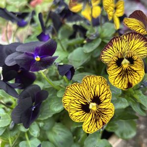 ビオラ タイガーアイさん🌸 今年もお迎えしました🐯 今年はブラックビオラと一緒に💛🖤 2株づつ植えてあります😊 🌸No.42、43、44、45🌸