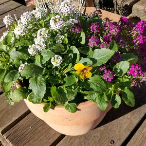 おはようございます☀️ 風が強くて気温より寒く感じる朝です🌪️🥶 やっと鉢に収まったパンジービオラ ①HCで見つけたクタクタのタイガーアイを切り戻してドラキュラの隣に🧛♀️🐅👁️🗨️ ②ヌーヴェルヴァーグ💜お一人様植え ③アントワネットお一人様植え ④シエルブリエ🩵とストックベイビー、朝霧草、アリッサムピーチandレモン ⑤ピンクのシエルブリエ🩷 プラチーナとアリッサム白