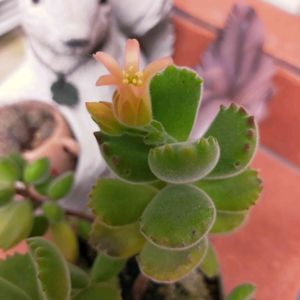初めて熊童子の花が咲きました かわいいですね💞 リスさん🐿も、じっと見ています