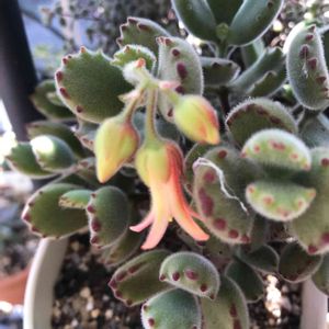 久しぶりの投稿です👍 熊童子に花🌸が咲いてるぅ🥰 初めて見ました😳感動✨