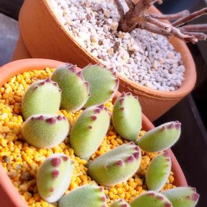 多肉を始めたばかりの頃に増やした月兎耳 & 熊童子 強いなぁと思ってスパルタ過ぎる管理をしていたら、熊童子の葉がポロリ… ᔪ(°ᐤ°)ᔭ ごめんよ… 💦