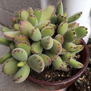 この子は昨日お迎えした子。 寄せ植えになってたんだけどこの子だけ元気そうで欲しいなーって思ってた子だったのでラッキーでした😆鉢付きで半額はお狩り得👍 熊童子🐻で合ってるかな。