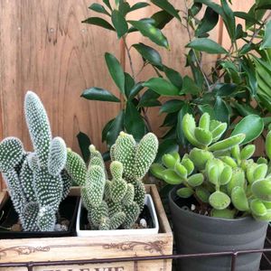 🐰ちゃん🐻ちゃん🌵元気です〜❣️ バニーカクタス🐰ちゃんは 特にモリモリ生長中💕 熊童子🐻ちゃんはあまり変わってないかな(*´∀`*) 🐰🐻ちゃん購入してから植え替えてないんだけど…💦 やっぱり植え替えないとダメですよね🙅