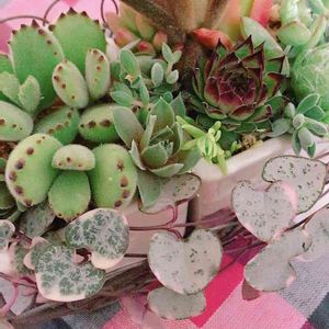 モフモフ♡熊童子可愛いですꈍ .̮ ꈍ ハートカズラと仲良し♪