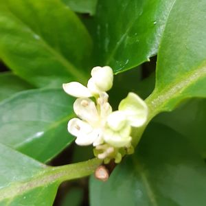 おはようございます 曇り空、これから 又☔、水やりいいかな😊 なんて庭でたら ビックリ👀‼️ これ紫陽花、ブライダルシャワー 今頃蕾?良く見たら小さいの 3個ついてた。 狂い咲き?それとも普通? そういえばワン友に上げた アナベルの苗、小さい花付けたと なんなんだろ?(・_・;?