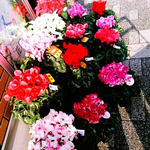 買い物途中で、花屋さんの店頭に、シクラメンが並んでいました。 手前のお花は、 ¥5,500でした。