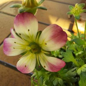 雪の下、月見草、ハクチョウゲ、ハナツルソウ 玄関先で開花してくれました(^∇^)ノ