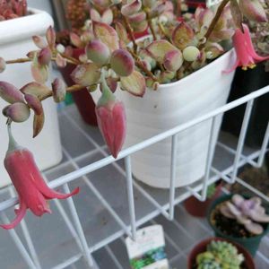 月美人の赤い花がやっと開きましたが、おじぎしています😌 樹氷が可愛い🥰