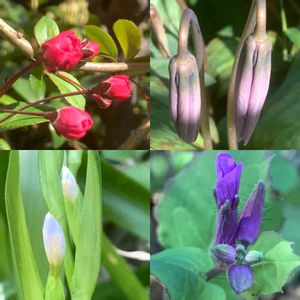 蕾シリーズ ↖️ハナカイドウ↗️カタクリ ↙️シャガ ↘️スミレ 🏷金曜日の蕾たちに参加します💓。 2021.3.14