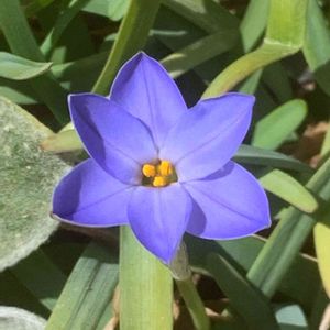 【花韮】《ネギ科》 🏷美しく青きドヨウに参加します。 ハナニラはキリストの生誕を“東方の三賢者(三博士)”に知らせたという「ベツレヘムの星」の名でも呼ばれます。 ちなみにクリスマスツリーのてっぺんに良くある星もベツレヘムの星を意味しています。確かにツリーなどのオーナメントと形がよく似ています。 2021.2.28